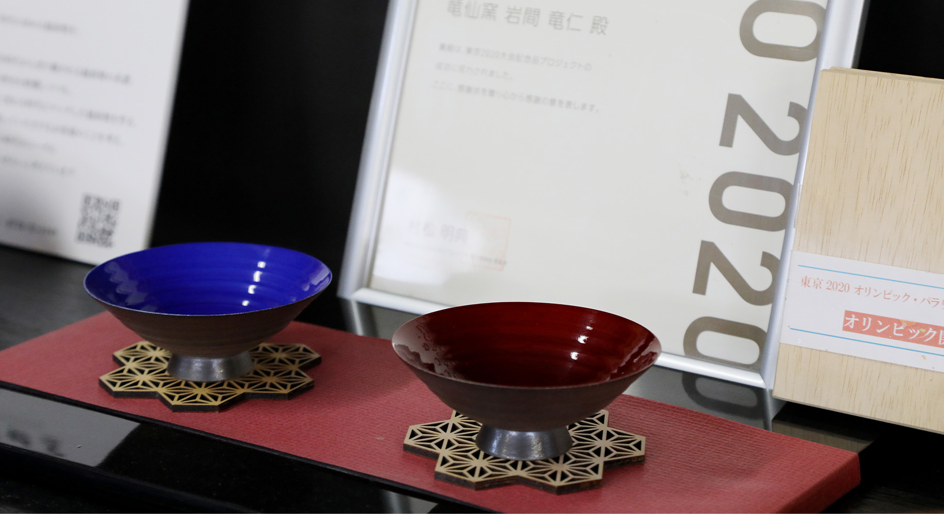 2020年の東京オリンピック・パラリンピックでは、県内の越前漆器とのコラボレーションにより、薄づくりの盃の本体の製作を担当しました。竜仙窯の個性が、ますます注目を集めています。