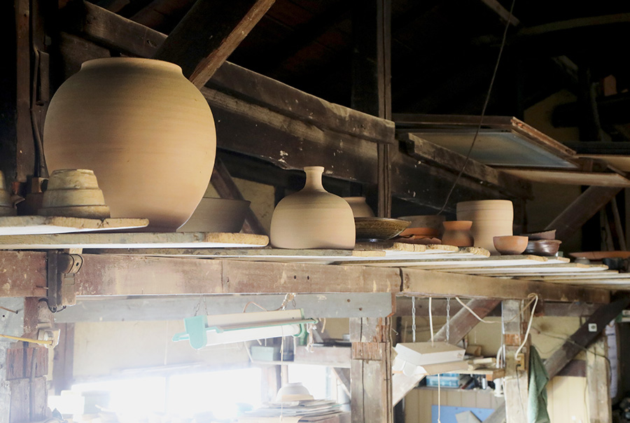 鉄分を多く含み、焼成後は赤みを帯びた、あたたかみのある表情を見せます。さらに、耐火度が高く、かつて登り窯で焼かれていた時代でも、形崩れしにくい強度を備えていました。