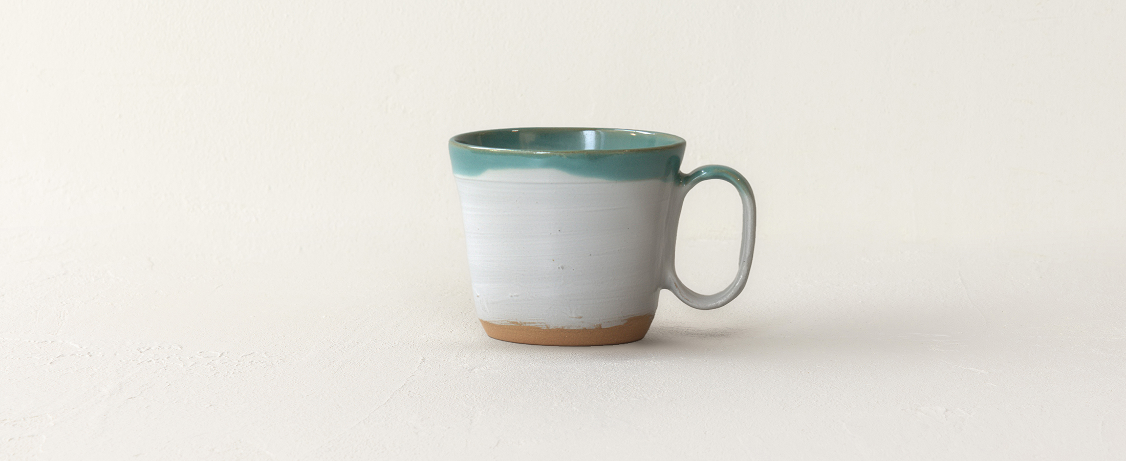 谷製陶所の5代目・谷信一郎氏が手がける「尾戸焼」のマグ。自ら掘り出した能茶山の土と、手作りの藁灰釉が生む乳白色の柔らかな質感が魅力です。貫入(ヒビ)が深まる風合いを愉しみ、日々に寄り添う贅沢な一品です。