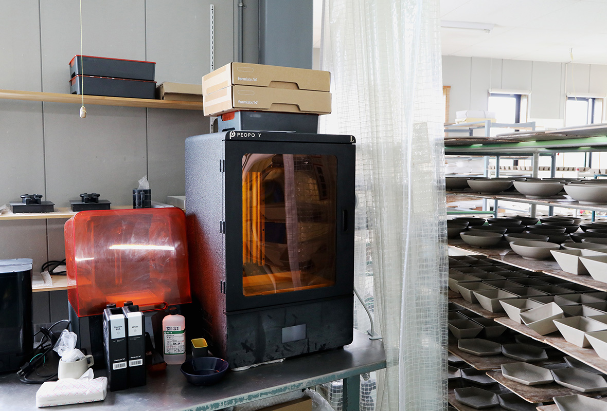 竹堂園の工場内をご案内いただきました。いち早く3Dプリンターを導入するなど、自らを“新しいもの好き”という島倉さんの性格上、機械化、デジタル化が進んでいると思っていましたが、意外にも手仕事の工程が多いことに驚かされました。